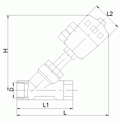 焊接式氣動(dòng)角座閥外形結(jié)構(gòu)圖: