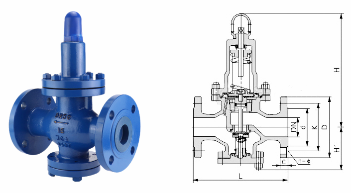 水用減壓閥是一種適用于工作介質(zhì)為水或非腐蝕性液體的管道用直接作用彈簧薄膜式減壓閥,該閥采用彈簧和膜片作敏感元件,直接傳感下游壓力變化,驅(qū)動閥瓣運動,控制閥瓣開度,實現(xiàn)減壓穩(wěn)壓功能,以保護閥后設(shè)備正常運行。其當(dāng)出口側(cè)壓力增加,膜片向上移動,閥開度減小,流速增加,壓降增大,閥后壓力減小,當(dāng)出口側(cè)壓力下降,膜片向下移動,閥開度增大,流速降低,壓降減小,閥后壓力增大,而閥后的出口壓力始終保持由整定調(diào)節(jié)螺釘整定的恒壓。