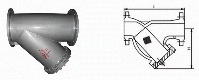 大口徑Y(jié)型過濾器外形結(jié)構(gòu)圖: