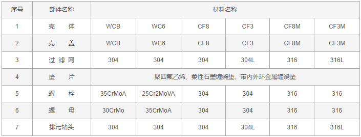 大口徑Y(jié)型過濾器零件材料: