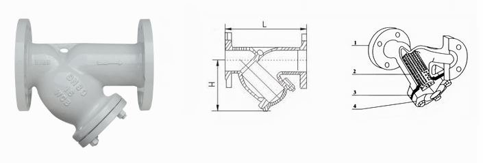鑄造Y型過濾器外形結(jié)構(gòu)圖: