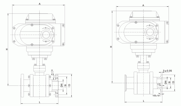 電動高真空(壓力)球閥連接尺寸: