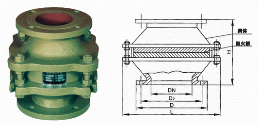 ZGB-1波紋儲罐阻火器外形結(jié)構(gòu)圖:
