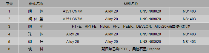 CN7M、Alloy20、N08020合金球閥零件材料: